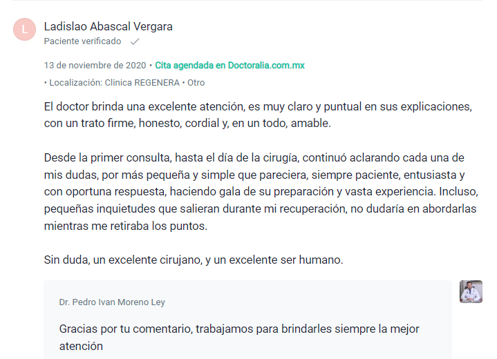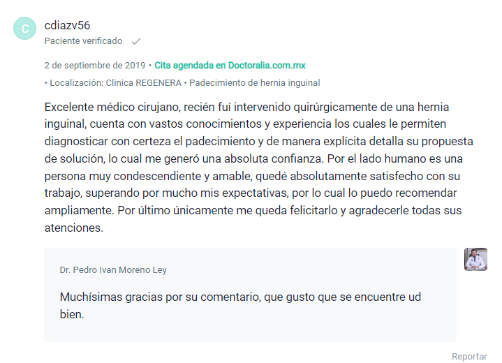 Escríbele a tu gastroenterólogo de confianza dando clic aquíTestimonios de pacientes que mejoraron su calidad de vida después de consultar al Médico Gastroenterólogo Dr. Pedro Moreno Ley